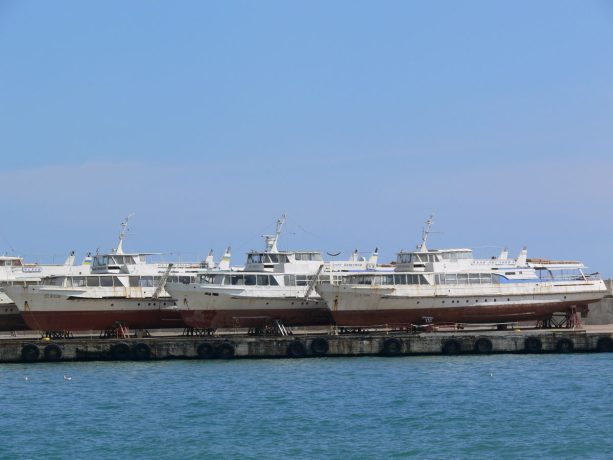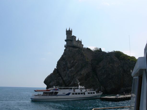 Schade, dass das Erbe der griechischen und sowjetischen Seefahrt hier v?llig auf den Hund gekommen ist. Die Katamarane und die kleinen Ausflugsschiffe, die einst die Krim umrundet haben m?ssen, liegen fast alle aufgebockt auf der Hafenmole. Nur die Schiffe nach Alupka fahren. Vor allem wohl, um die Touristen wie uns zum Schwalbennest zu bringen.