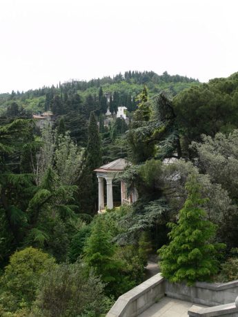 Leichter zug?nglich ist die weit oben im Norden von Jalta auf einem H?gel thronende armenische Kirche. Von Westen kommend kann man auf dem Weg dorthin die wunderbare Puschinskaya mit den vielen kleinen L?den und Cafes entlang schlendern und in der Tschechowstra?e alte Villen in unterschiedlichen Stadien des Verfalls entdecken. Oben angekommen hat man zwar leider keinen Panoramablick ?ber die Stadt, aber eine sch?ne Aussicht in die umliegende H?gellandschaft.